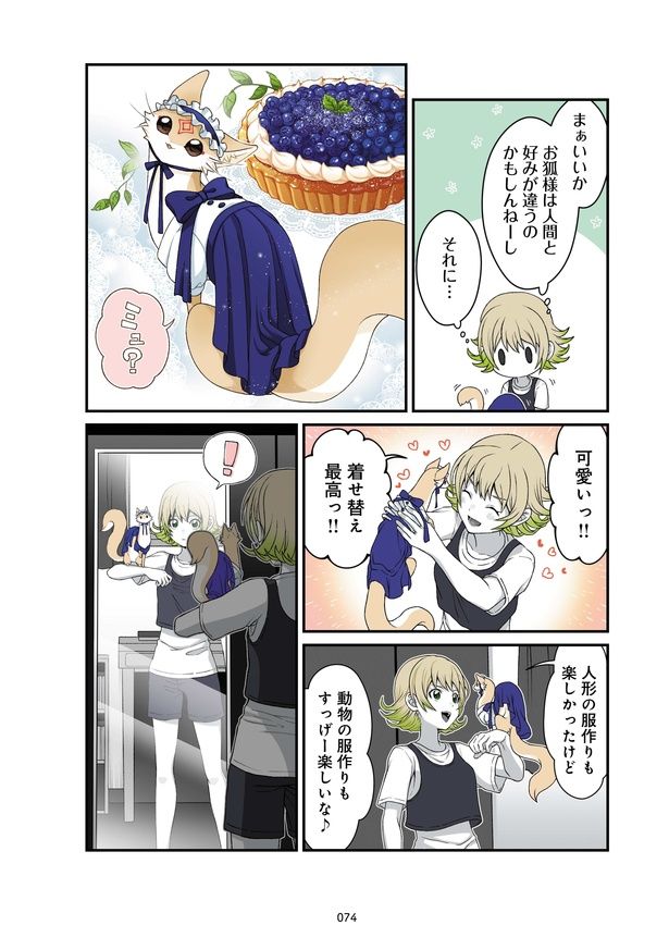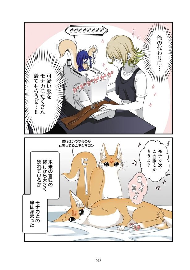 2. 管狐に手作り服を着せたら、最高にかわいい! 主は着せ替え服を縫う手が止まらない/管狐のモナカ⑥