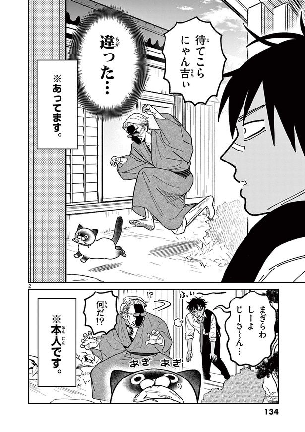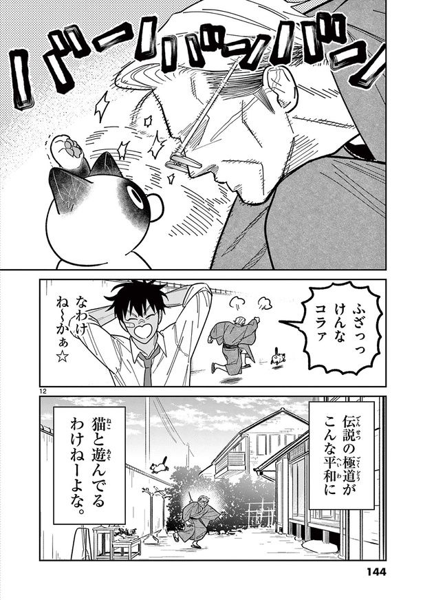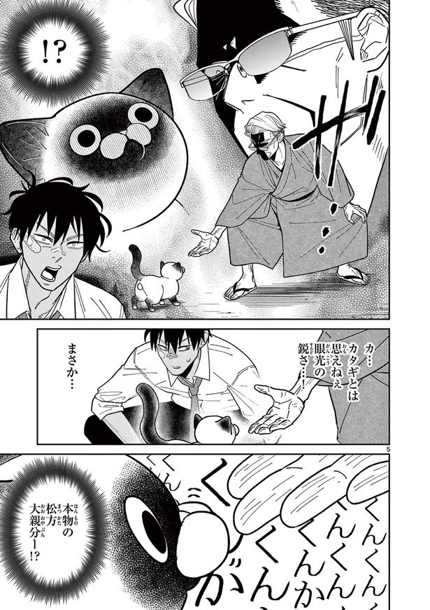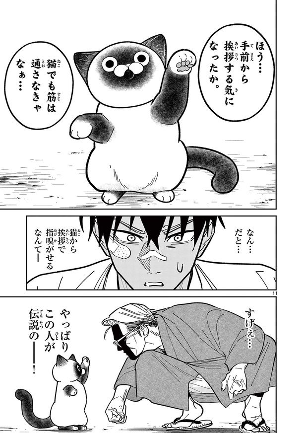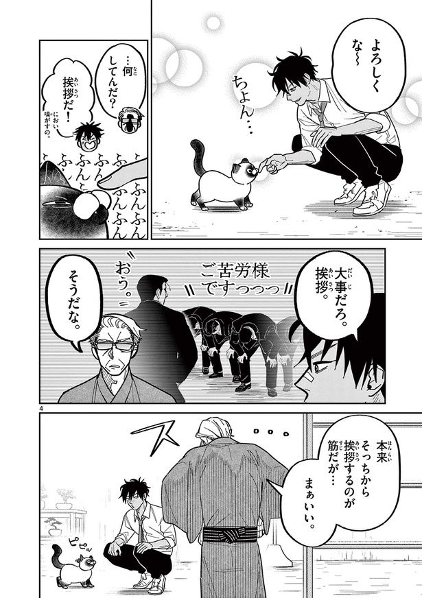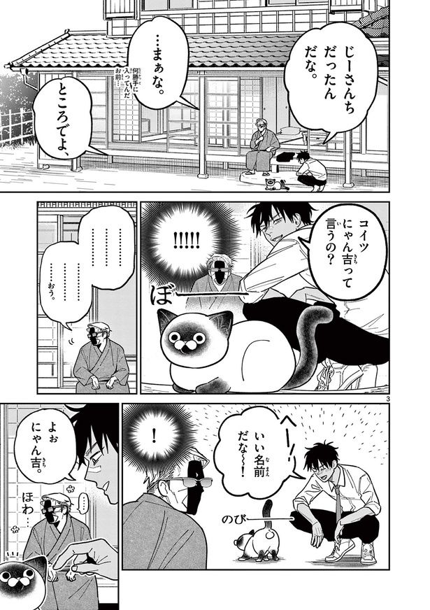 3. 憧れの大親分を探す組の若者。同じ苗字の老人がいたけど、猫と遊んでいるわけないよね…?/オヤジとにゃん吉⑨