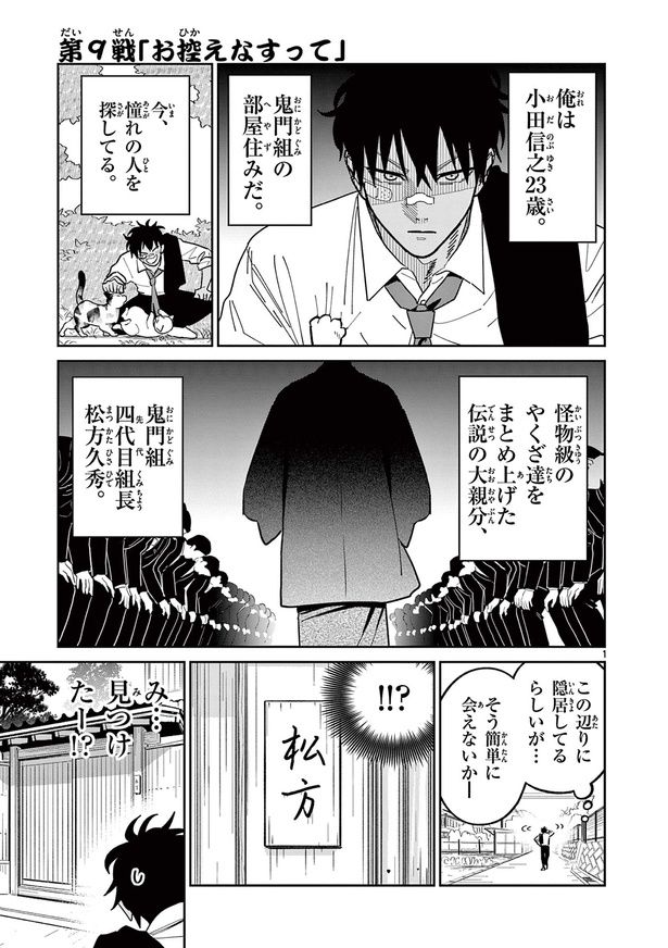 憧れの大親分を探す組の若者。同じ苗字の老人がいたけど、猫と遊んでいるわけないよね…?/オヤジとにゃん吉⑨