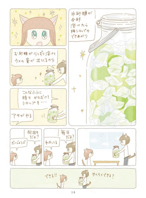 瓶をゆすって梅とシロップを混ぜ、毎日お世話をしたら… きれいな黄金色のシロップに【ヨルとアサの梅ジュース】/夜が明けるとき猫がそばにいれば