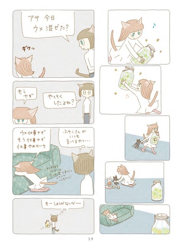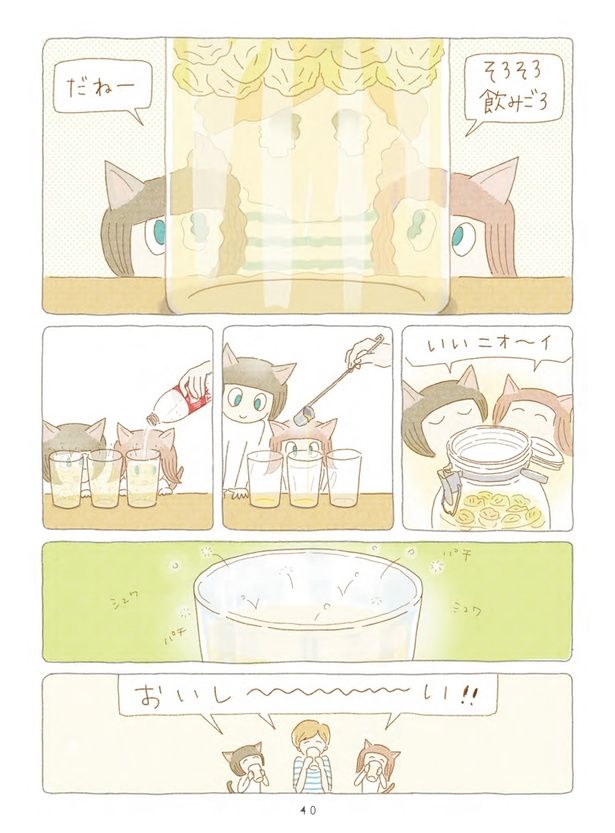 お花見、梅仕事、お盆、花火、紅葉、冬支度のお裁縫… さくらんぼ、お祭りの綿あめ、焼き芋、エッグノック、手作りパン… 季節の移り変わりを楽しみ、おいしいものに囲まれながら、愛あふれるしあわせな日々。 絵本のような癒やしのコミック『夜が明けるとき猫がそばにいれば』をお届けします。