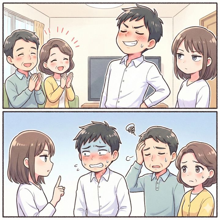 居間の空気がすっと冷めていくのが分かりました。父は呆れたように大きなため息をつき、母は困ったような顔で夫を見つめました。