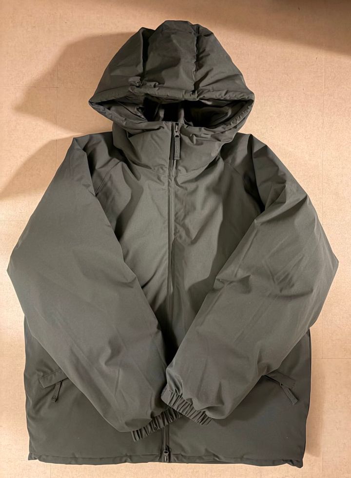 GUのウォームパデッドパーカです。カラーはダークグリーンでLサイズを着ています。