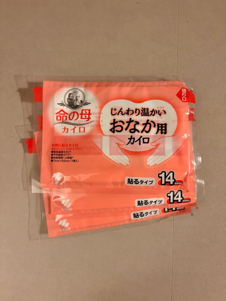ドラッグストアで手軽に購入できる命の母カイロ。香り付きのタイプもあって、気分によって使い分けています。