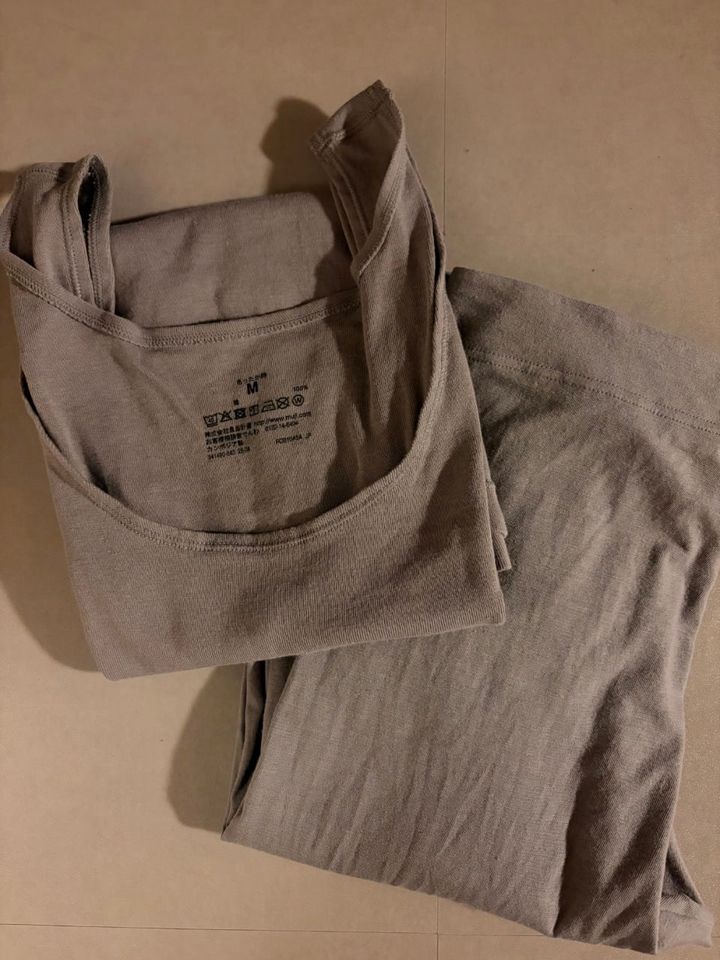 綿100% あったか綿シリーズのタンクトップとレギンスを猛リピート中。小学校6年生の娘もこちらを愛用していて、分かりやすいように母がグレイッシュブラウンで娘にはブラックというように色分けして購入しています。