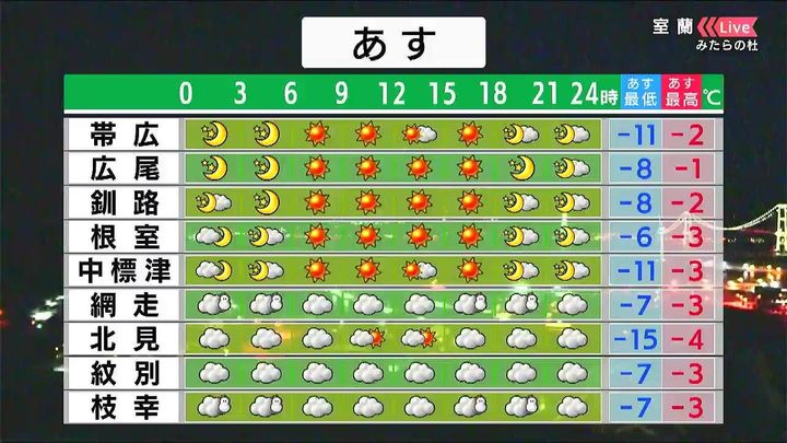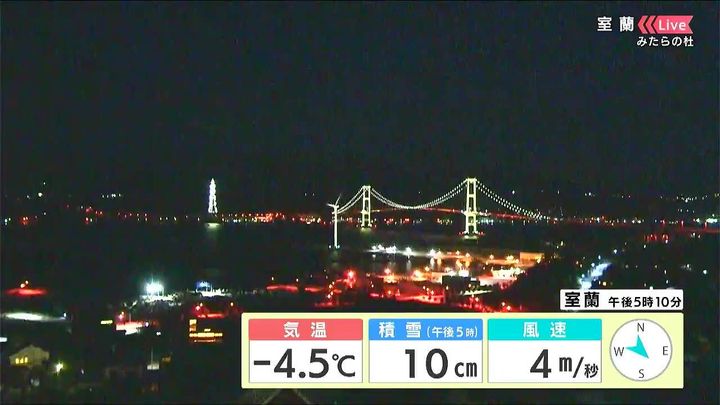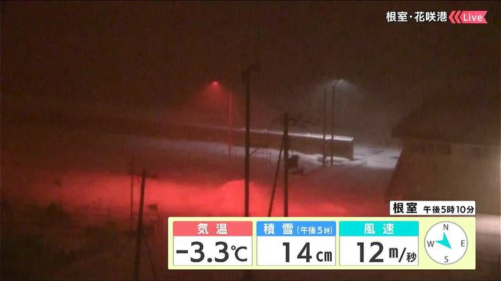 背景は20日午後5時ごろの根室花咲情報カメラ