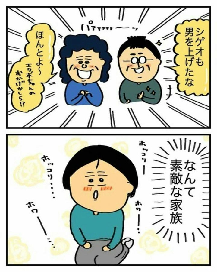 自分の母親に対して、キッパリと言い切ったシゲオさん。とても頼もしく思いますが、あまりにもハッキリとした言い方に、エクボさんは内心ドキドキします。