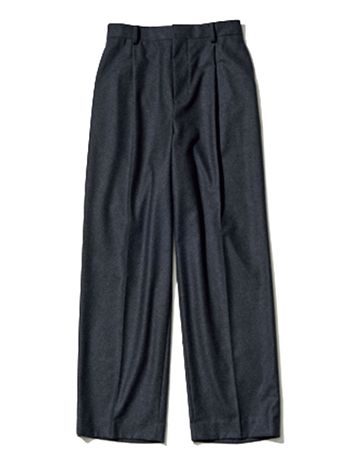 レディースにはない、絶妙な「余白」を求めてたどり着いたメンズサイズ。上質なメリノウールを使用しているため、サイズは大きくても見た目は軽快でやわらか。ベルトでキュッと締めてはくことで生まれるドレープが、かえって女性らしさを際立たせるという逆説的なテクニックにも必要。