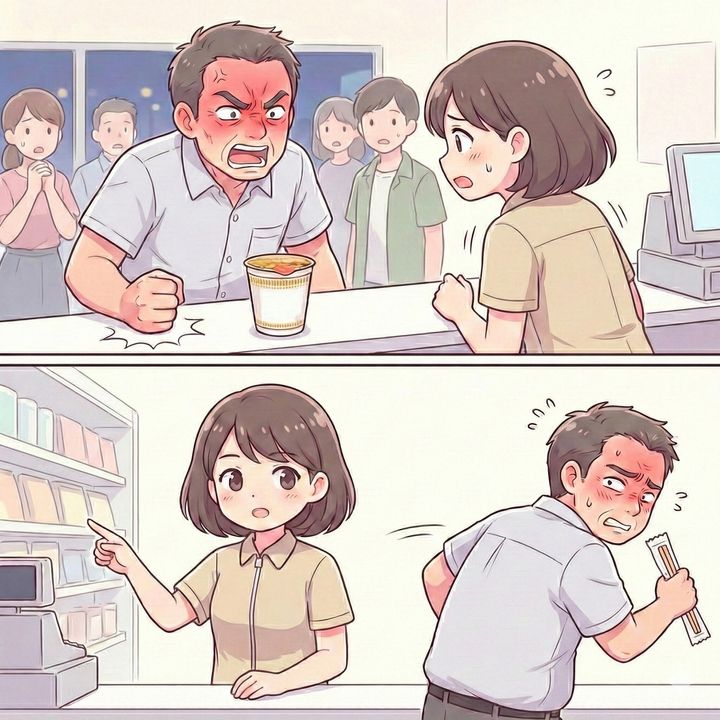私は自分の耳を疑いました。男性が買おうとしているのは、一つのカップ麺です。