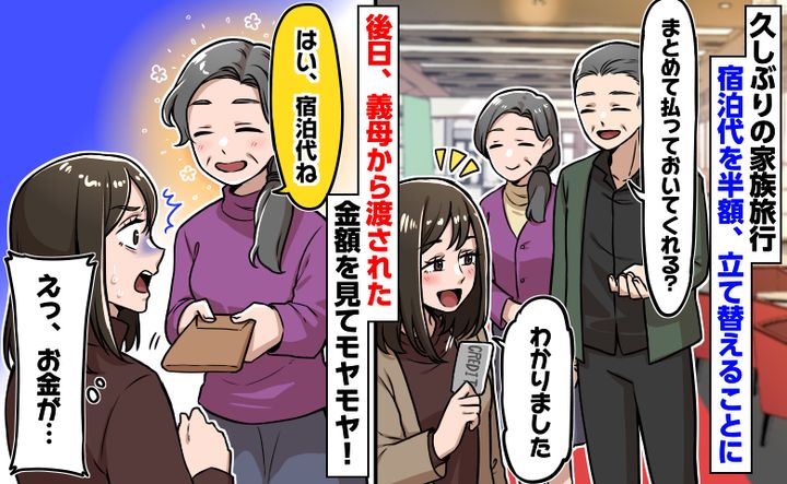 さて続いては、義実家との旅行で「自分は家族ではない」と突きつけられたような、切ないエピソードです。部屋割りや食事の席でのあからさまな格差、義母からの心ない一言……楽しいはずの旅行で疎外感に打ちのめされた妻。