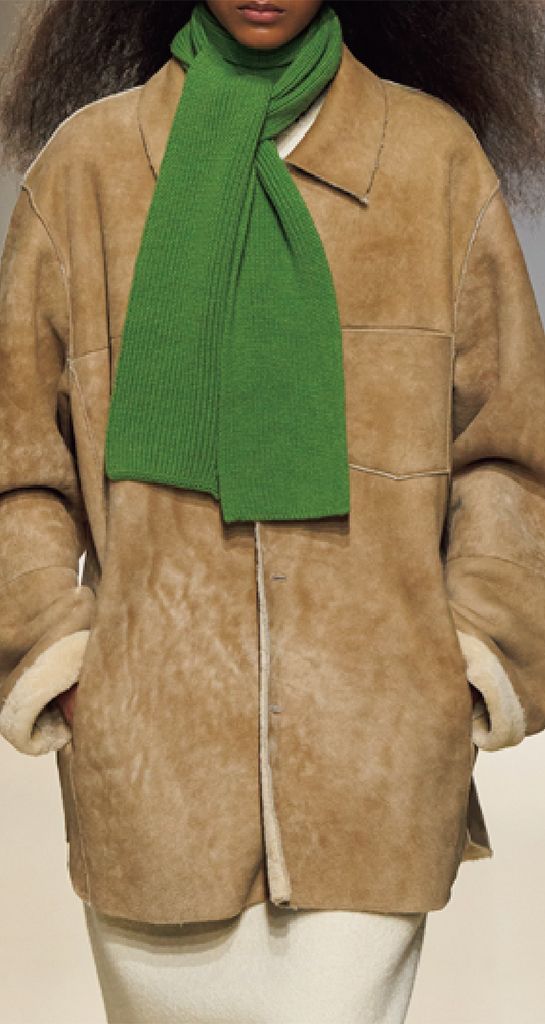 のっぺりと見えがちなベージュには、落ち着きのあるグリーンを添えて深みを加算。ぼやけ回避にも効果的。