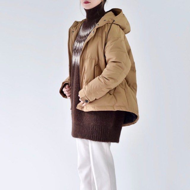 キャメルジャケット×オールホワイトコーデ