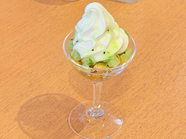 [Brand new! Spring Parfait〜春のパフェ食べ放題2026〜]で食べられるパフェは全てが新作で、見た目も味も様々なパフェがそろっています。 洋の要素を取り入れた『春のフルーツと北海道ソフトクリームの贅沢パフェ』はフルーツカクテルの上に十勝のソフトクリームがたっぷりとのっていますが、トッピングされたキウイの酸味がきいているので、見た目よりペロリと食べられました。