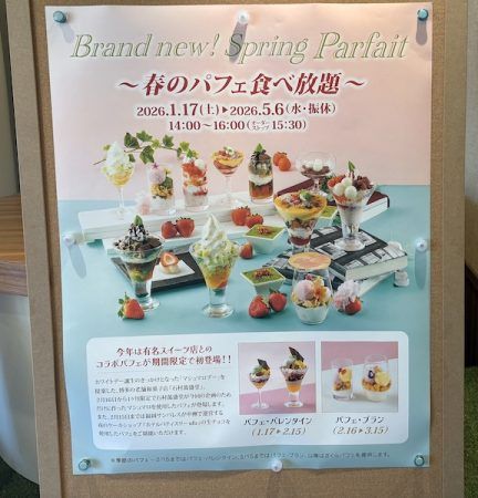 こんにちは。リビングふくおか・北九州Web地域特派員のRITAです。 お正月休みも終わって、また忙しい日々が始まりました。毎日頑張っている自分にちょっとご褒美が欲しい、と思いませんか? 今回は、そんな時にぴったりな企画が福岡サンパレス ホテル&ホールで開催されるとのこと。[Brand new! Spring Parfait〜春のパフェ食べ放題2026〜]のメディア招待会がありましたので、参加してきました。