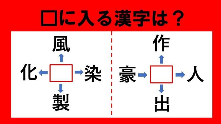 【漢字パズル】□風、□化、□製、□染に入る漢字はなんでしょう?
