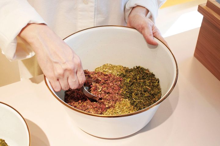 日本を代表する植物療法士・森田敦子さんによるフィトテラピーとフェムケアのショップ。特別にブレンドされたハーブを使ったハーブ蒸しは、体が芯から温まる。ハーブ蒸し(30分)¥4,400。