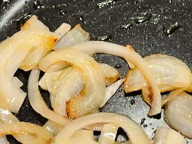 続いて、フライパンにオイル(大さじ1)を熱し、玉ねぎを中火で2分ほど炒めます。