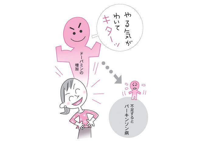 美味しい食事を食べたとき、目標を達成したとき、褒められたときなどに感じる喜びは、ドーパミンによるものです。この「報酬」の感覚が、次の行動への動機づけになります。