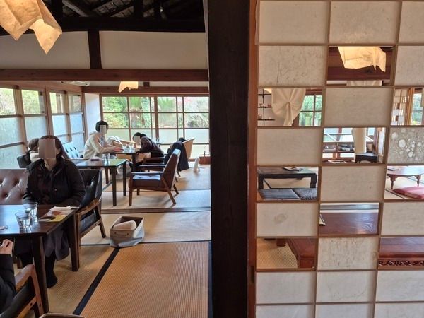 店内は、厳かな歴史と温かな雰囲気を感じます。障子とランプシェードは、鹿児島県指定伝統的工芸品の蒲生和紙で出来ているとのこと!
