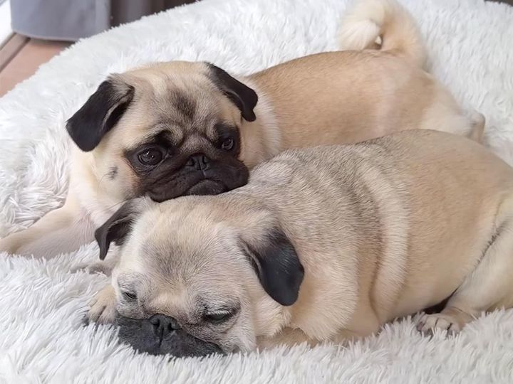 「運命の相手かも?」と言いたくなるほど、何をするにも息ぴったりなパグさん