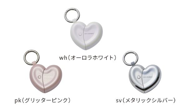 ハート型のデザインが特徴で、オーロラホワイト、グリッターピンク、メタリックシルバーの3色を用意。ポーチやポケットにおさまるコンパクトサイズで、バッグなどに付けて持ち運びができるカラビナも付いています。