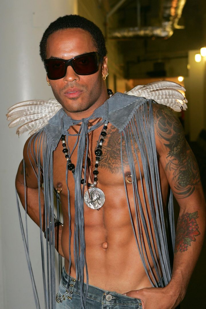 ゾーイ・クラヴィッツのパパで、シンガーのレニー・クラヴィッツ。彼もノストリルピアスを両側に開けているピアス好きなのだが、それ以上に有名なのがボディピアス。