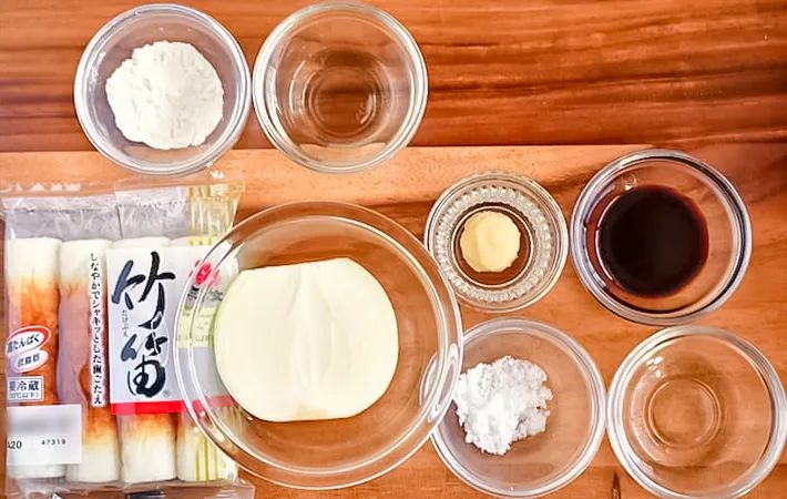 タレがよく絡むように、ちくわには薄力粉をうすくまぶしておきます。薄力粉がない場合などは省いても大丈夫です。