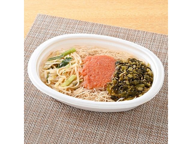 鶏がらスープ・醤油やごま油で中華風に味付けしたビーフンに、明太子入りのソース・高菜・もやし・にらを合わせました。 ※宮崎県、鹿児島県では取り扱いがございません。 九州で販売