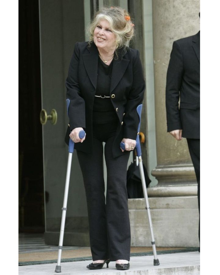 2007年9月、パリ・エリゼ宮にて。動物たちの権利を守るため、当時の大統領ニコラ・サルコジとの会談に訪れたブリジット。報道陣の前で自身の足で堂々と歩くその姿には、どんな状況でもひるまない活動家としての威厳が漂う。