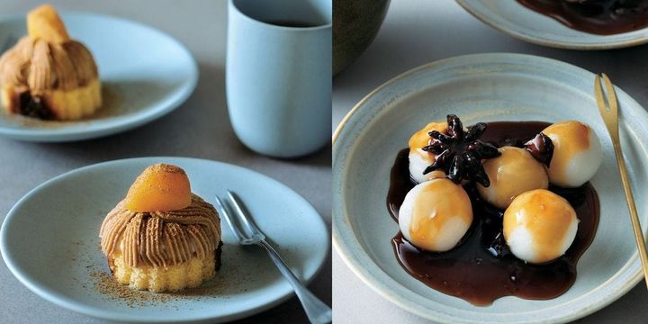 仕上げを彩るのは、ミルクチョコにシナモンとクローブを効かせたスパイスチョコソース。ミルクチョコのマイルドな甘みに、シナモンの華やかさとクローブの深いスパイシーさが重なることで、カカオの風味がキラッと輝く。