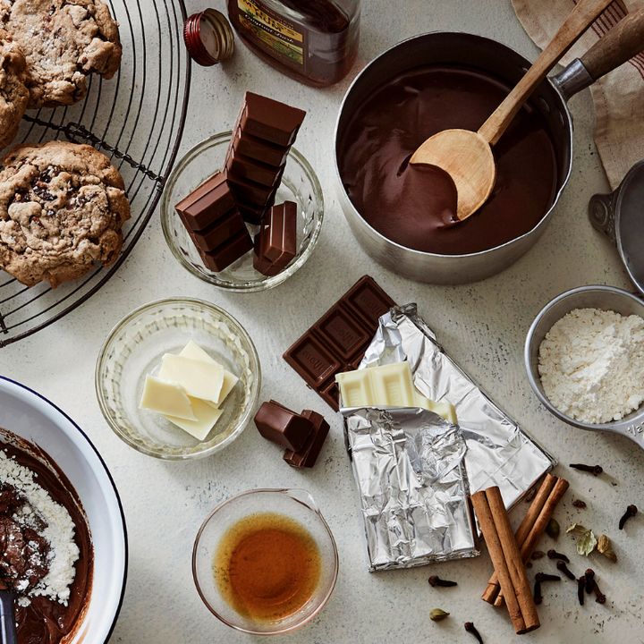 ただ甘いだけではない、大人のチョコチャンククッキーに仕上げるポイントは生地に忍ばせたオールスパイス。シナモン、クローブ、ナツメグの3つを合わせたような芳醇な香りが、チョコレートの風味をより深く、くっきりと引き立てる。