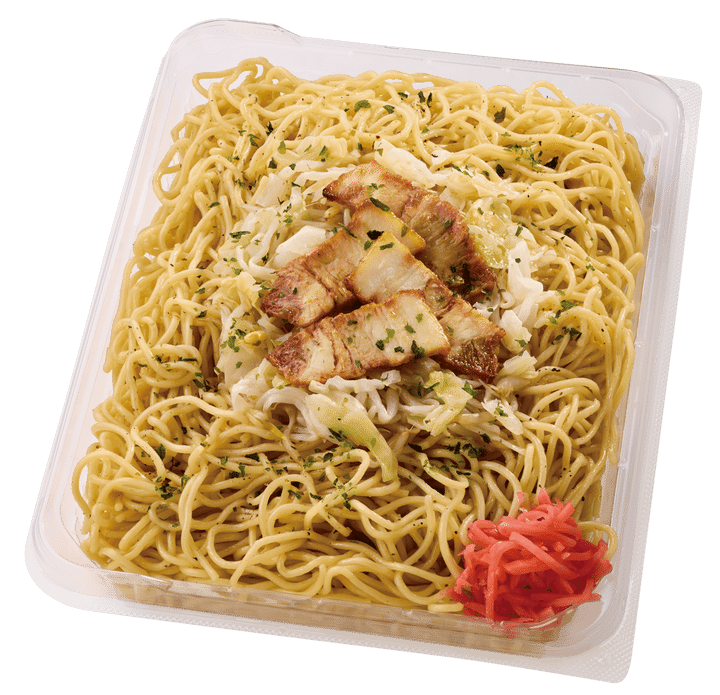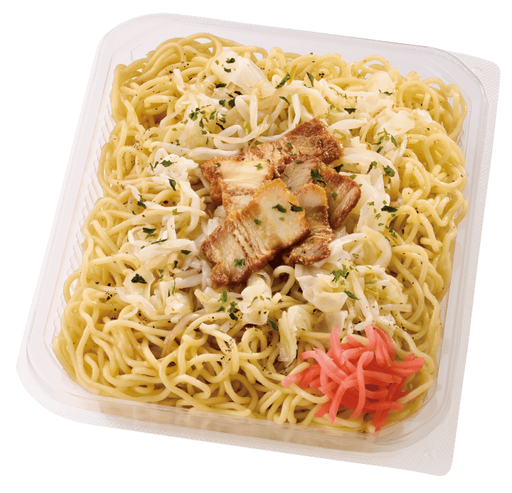 従来品の「大盛塩焼そば」と比較して、麺重量を約50%増やしています。