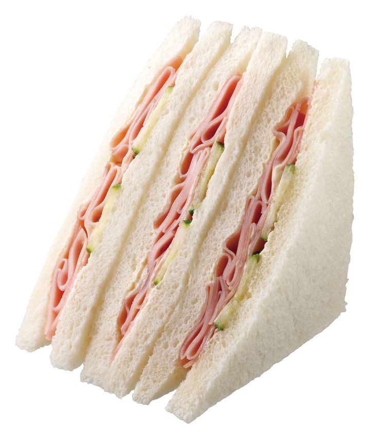 旨みあるハムを楽しむサンドイッチ。きゅうりの食感とからしマヨネーズの味わいをアクセントにしています。