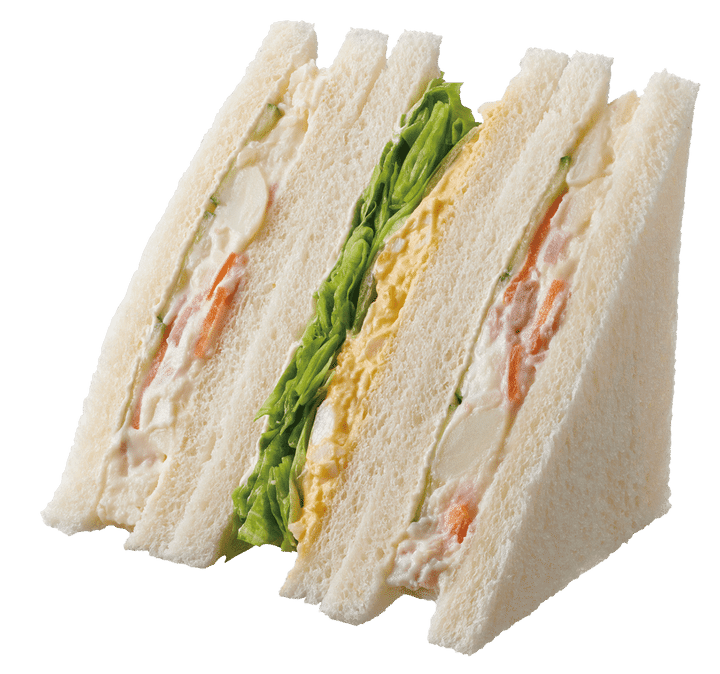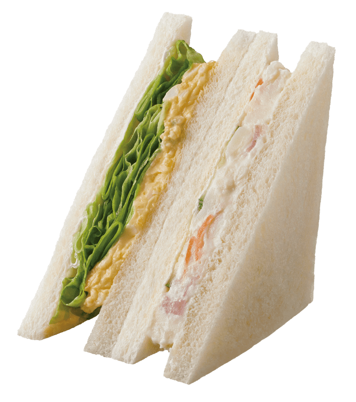 たまごサラダ、ツナサラダを、ふんわり食感の食パンでサンドしています。