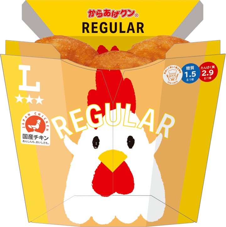 従来品の「からあげクンレギュラー(5個入)」と比較して、総重量を約50%増やしています。