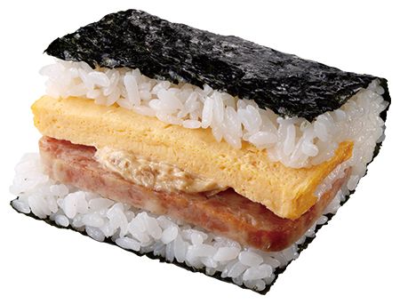 塩味を効かせたポークランチョンと甘さ控えめの玉子焼、シーチキン®マヨネーズをサンドしたおにぎり。