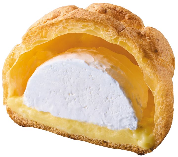 卵のコクとなめらかな口当たりのカスタードと、北海道産練乳を使用したホイップクリームの2層仕立てのシュークリーム。