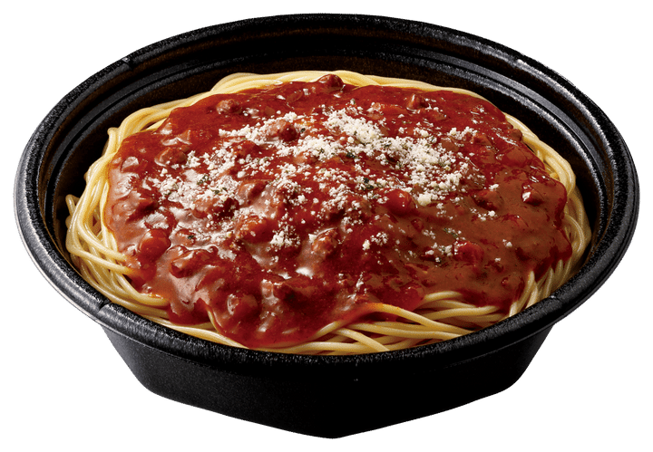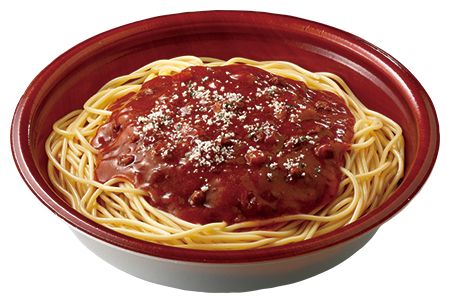 従来品の「大盛ミートソース」と比較して、麺・ソース重量を約50%増やしています。