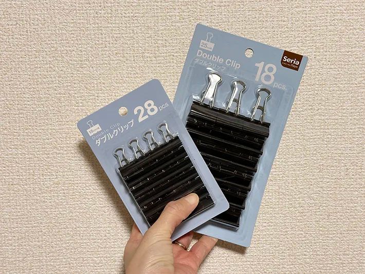 筆者が『セリア』で購入したのは、25mm幅と15mm幅の2種類のダブルクリップ。どちらも税込み110円です。