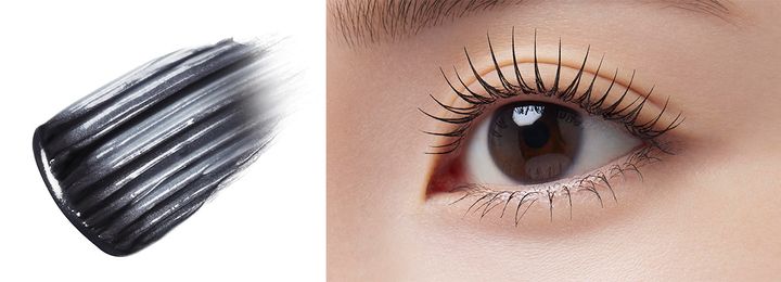新開発の「つぶつぶコーム」×「スムースロング液」で、まつ毛の根もとにしっかり液を絡ませながら、束感を整えつつ均一に塗布。とかすだけでダマのない東ロングまつ毛をつくり、ちゅるんとしたツヤ感のあるブラックカラーが目元の印象を引き立てる。