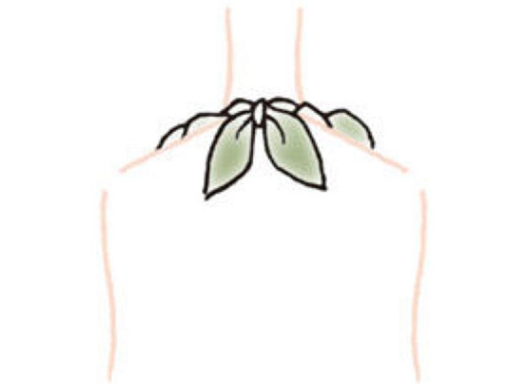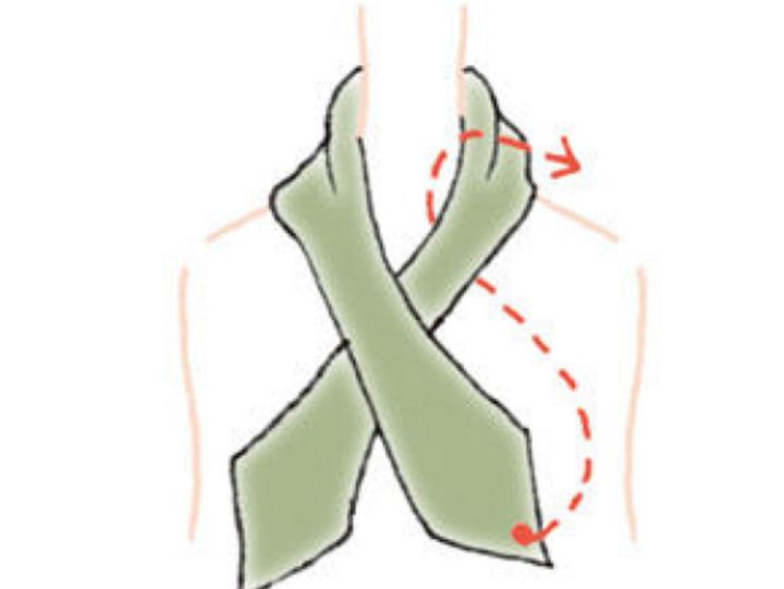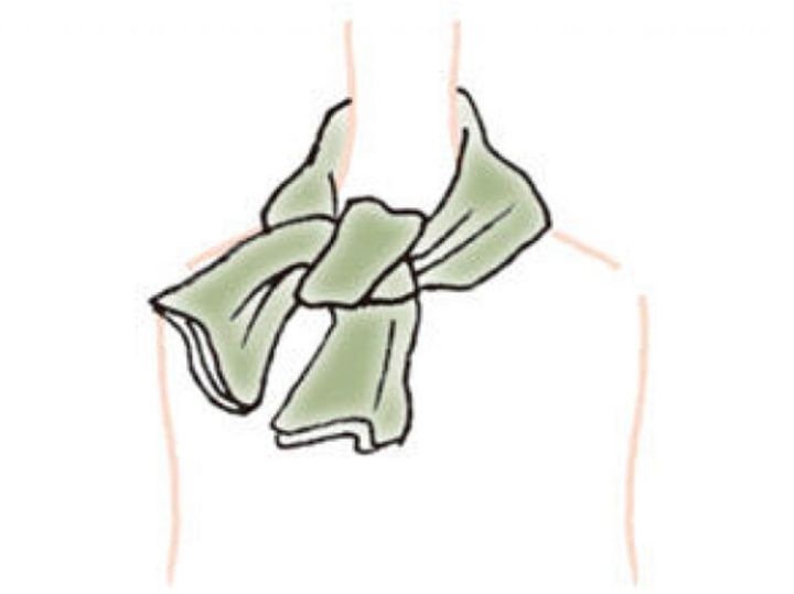 【3】首の後ろで固結びにし、形を整える。