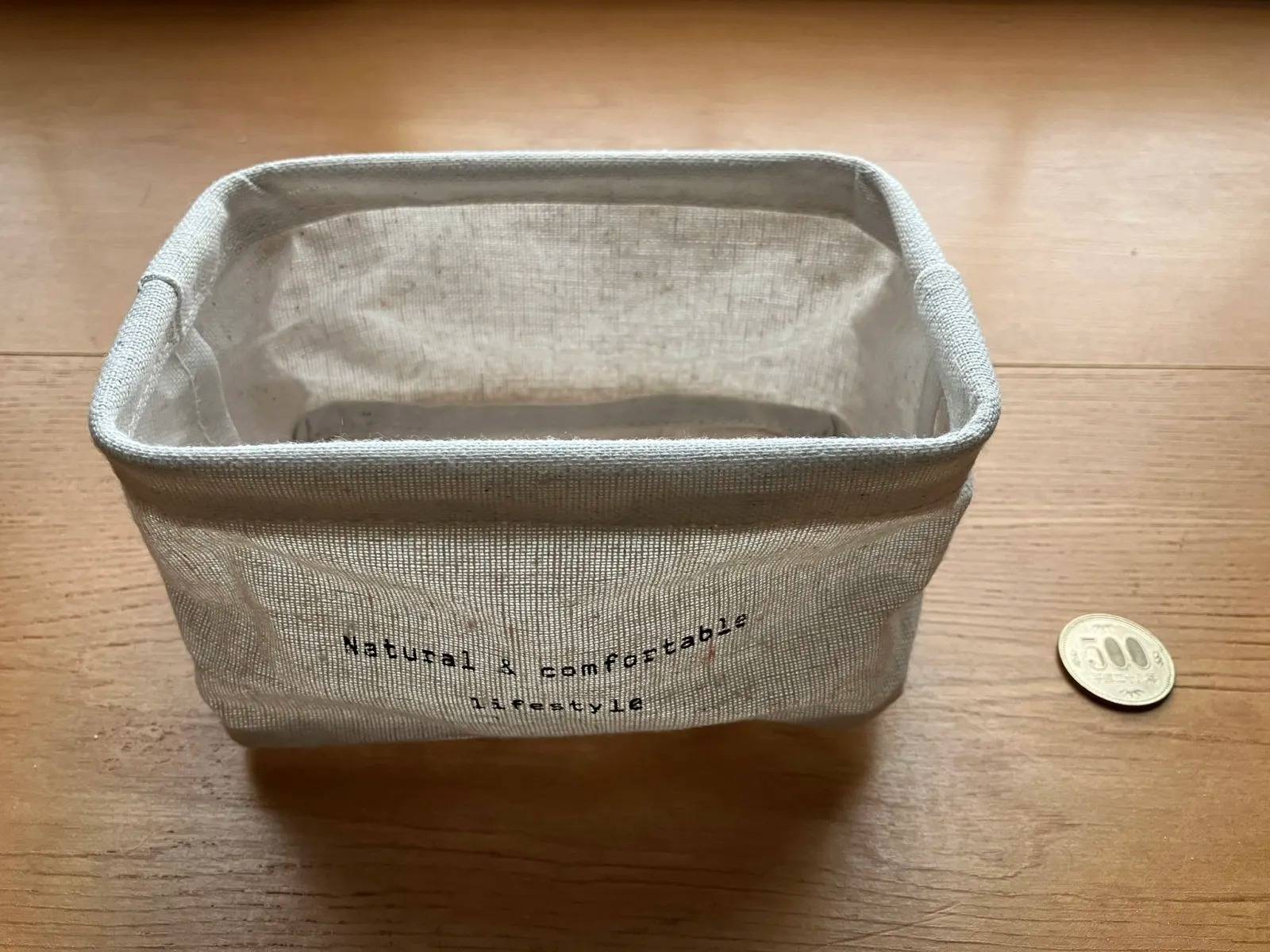 Seria(セリア)の「リネン収納バスケット スクエアM」は、天然素材を使用した、小物を入れるのに適したアイテムです。
