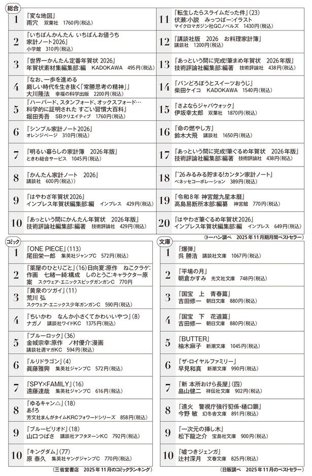 3. 2025年11月話題になった本は? 家計簿・年賀状・暦の季節 新作映画の原作がランクアップ【なんでもランキング】