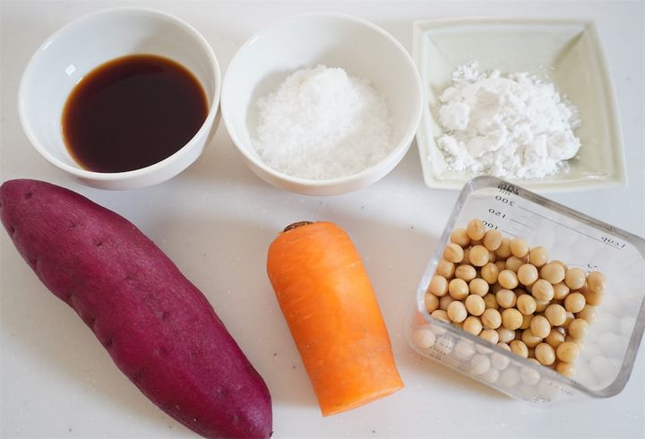 大豆とさつまいも、にんじんを使った栄養満点な「ビタミン三強おやつ」。