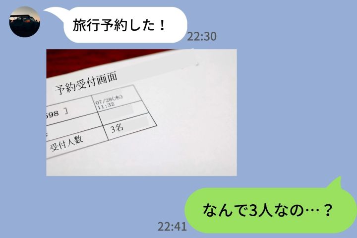 「旅行予約した!」→送られた確認画面をLINEで見たら人数が"3人"…私じゃない誰かが混ざってた