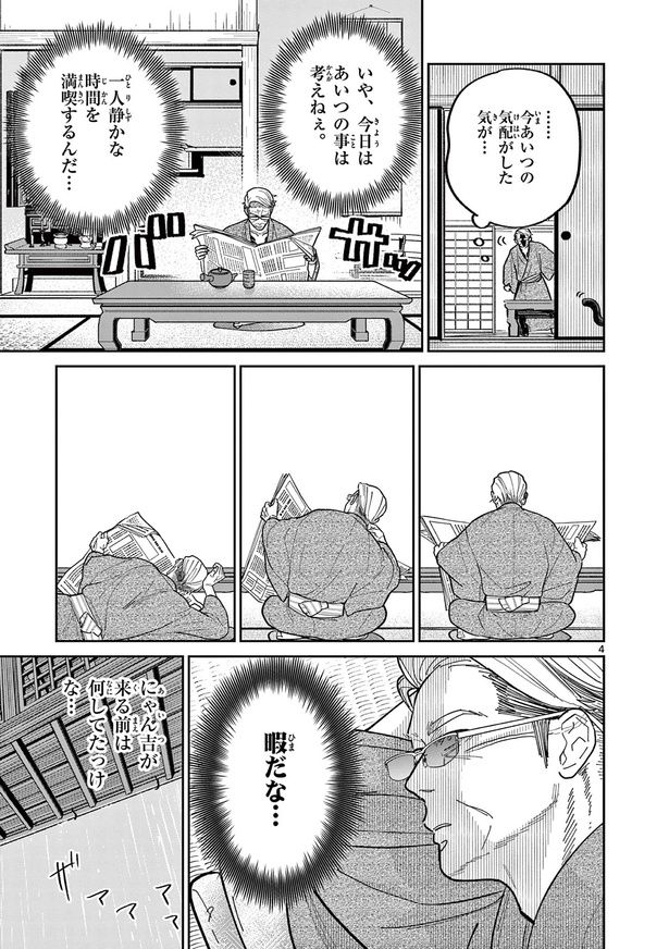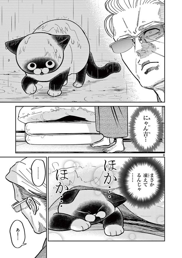かつてやくざ同士の抗争に終止符を打った伝説の極道・松方久秀。平穏を取り戻したのち年を重ねて組長を引退するが、平穏な日々は彼には張り合いがなく、とても暇なものだった。そんな松方の心に火を付けたのは、たった1匹の虚無顔の野良猫。「にゃん吉」と命名された野良猫は自由奔放で、堅物な松方の常識を覆すばかり。果たして松方は、にゃん吉との抗争に打ち勝つことができるのか……!? 元極道のオヤジ×猫の日常を描いたドタバタふわふわコメディー『オヤジとにゃん吉』をお楽しみください。