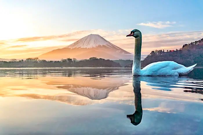 ・白鳥「おっ、逆さ富士の撮影中か?邪魔したろ!」