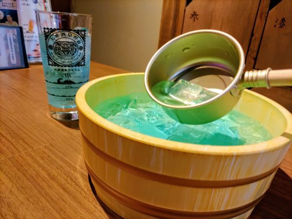 また、遊び心満載なのが「風呂桶」にお酒を酌むスタイル。