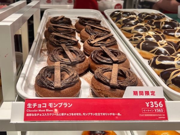 チョコ生地のリングに、生チョコを練りこんだチョコクリームがモンブラン風に巻かれています。ビターな板チョコの食感と、なめらかなチョコクリームがやみつきになります。