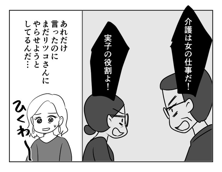 そもそも今回の一件は、タダノリさんが「介護は嫁が」と言ってリツコさんに押し付けようとしたことがきっかけでした。それがなければ焦ったリツコさんがアサカさんにあんな話をしてくることもなかったはずなのです。もう時代は令和ですが、「介護は嫁」という価値観はまだまだ色濃く残り続けています。みんなで頭を柔らかくして、固定観念から自由になり、価値観をアップデートしていけたらいいですね。